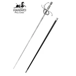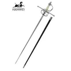 Ce est une réplique d’une rapière Pappenheimer allemand. Cette lance est livrée avec un fourreau en bois recouvert de cuir. Sa longueur est de 103 cm, il a une lame d’une longueur de 80 cm et sa largeur maximale est de 4,3 cm. Poids sans fourreau: 1,9 kg.