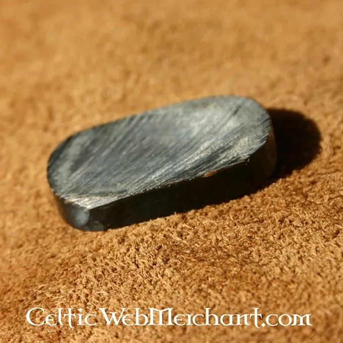 Disque (embout) en corne pour manche de couteau. Ce disque est en corne de buffle d’eau, une espèce de vache qui ressemble étroitement à celle de l’Europe médiévale.