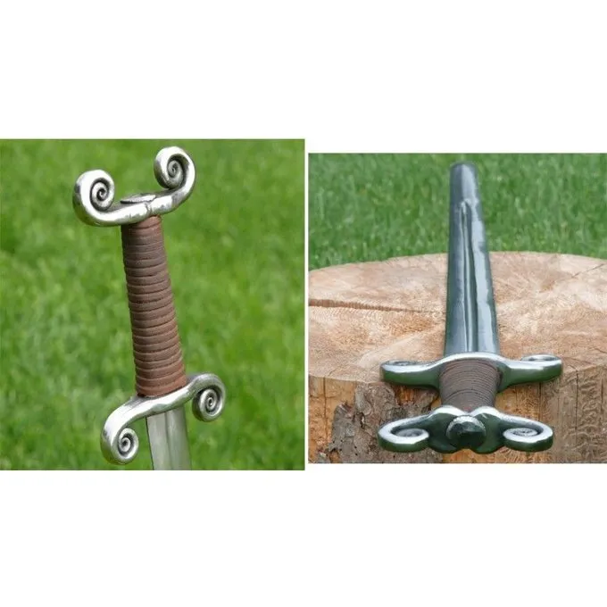 Cette épée celtique est une réplique d’un original retrouvé à Melnik (actuelle république tchèque). Des épées comme celle-ci étaient utilisées par les tribus celtiques à la fin de la période Hallstatt et au début de la période La Tène. Le type d’épée a été développé à partir de l’épée d’antenne. Les tribus celtiques de la région tchèque vivaient à côté des civilisations grecque et romaine/étrusque et étaient l’une des tribus les plus riches de cette région.